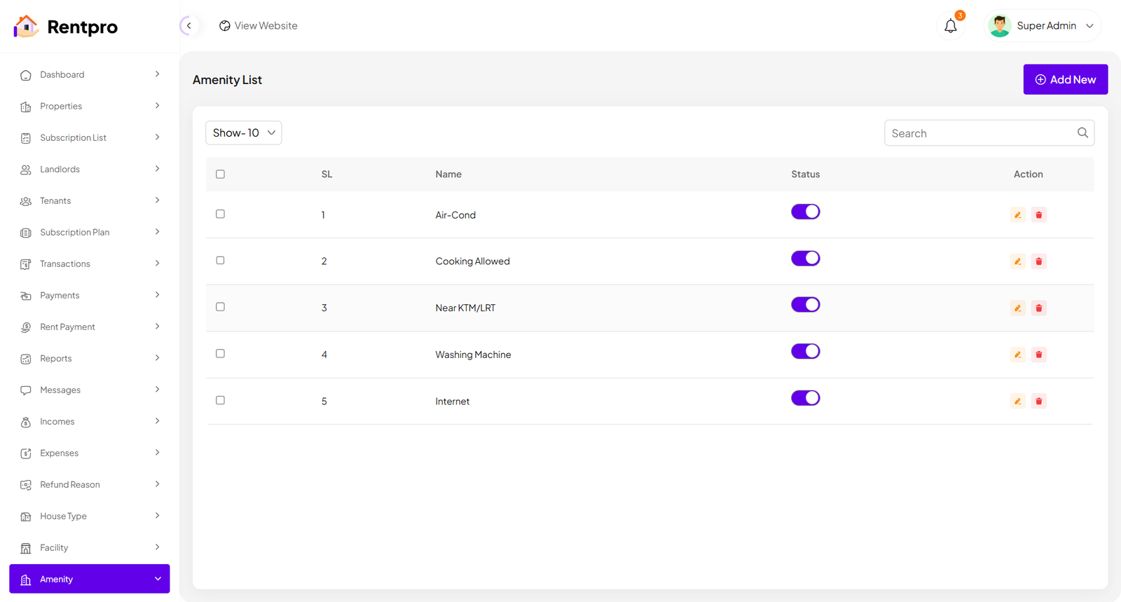 - Facility Amenity Module: Added facility amenity repository, UI views, and API integration for landlords to manage facilities