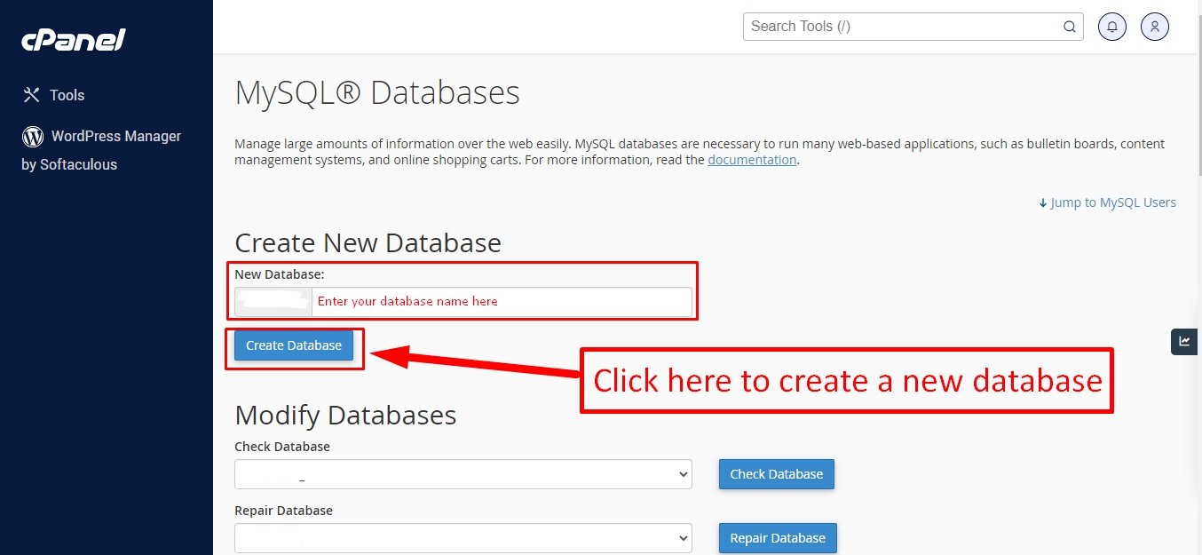 Before installing, you will need to create a new database. If you already know how to do this or have already created one, skip to the next step.