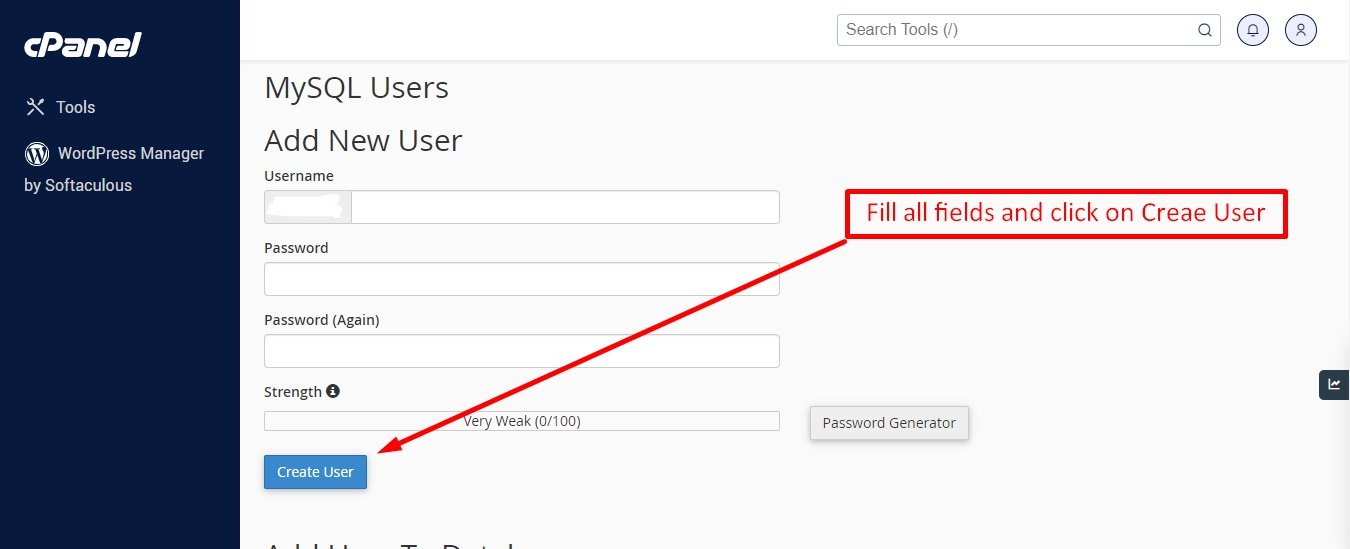 Now you need to create a new user. On the same page go to create a new database user