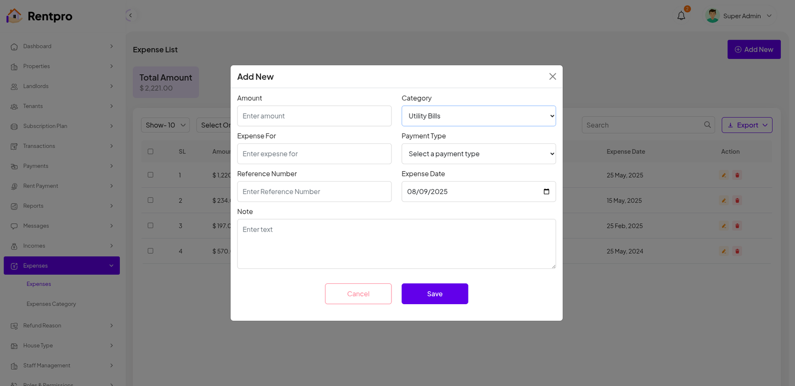 The "Add New Landlord" page in the Rentpro admin panel is used by administrators to manually create a new landlord account. This is a secure and controlled way to onboard a new user who will list properties on the platform.