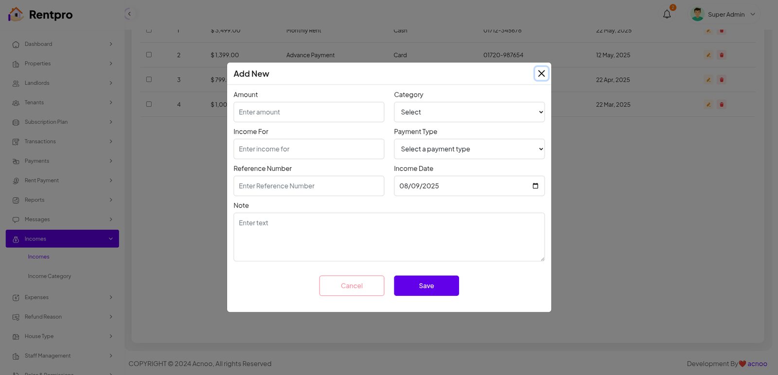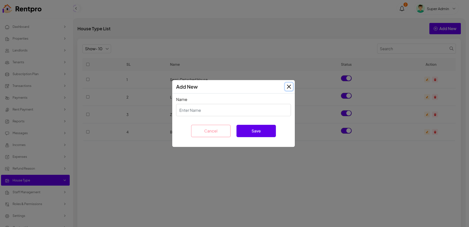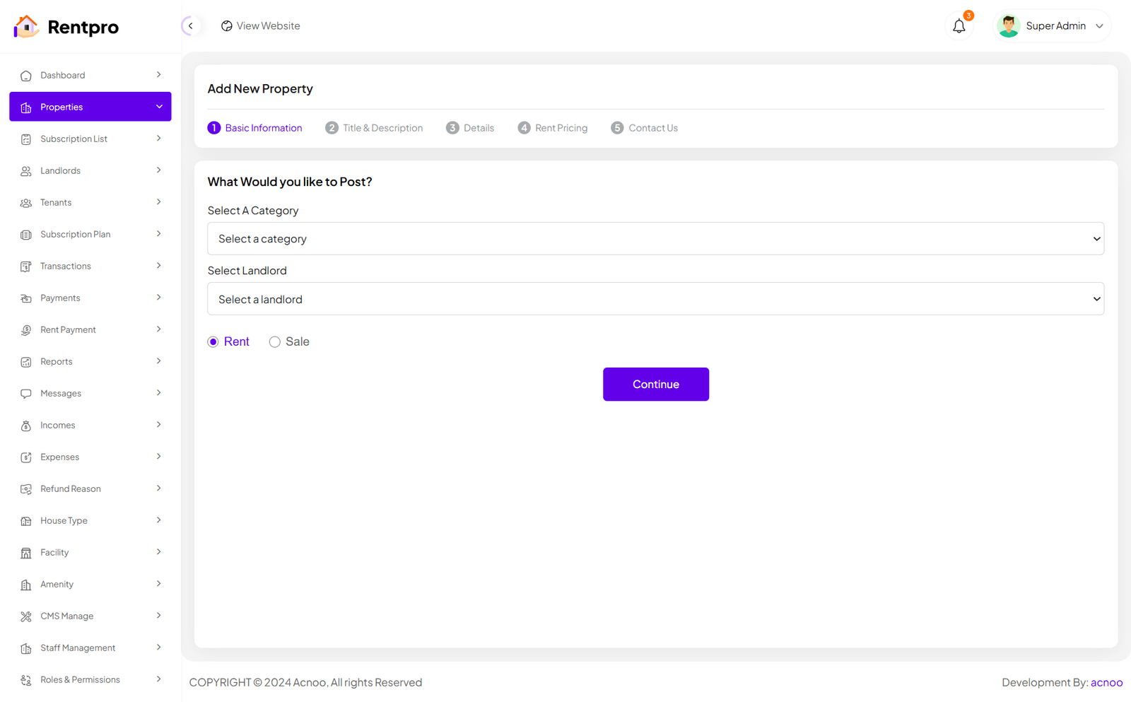 Rentpro - Admin Panel