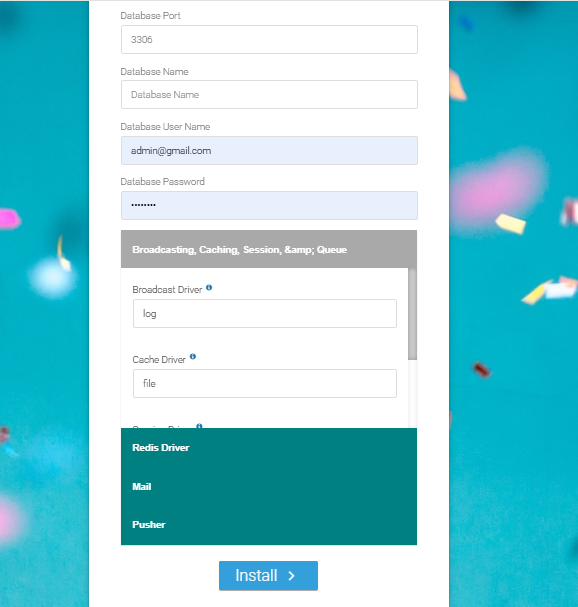 Please enter your database credentials and click 'Install' to continue.