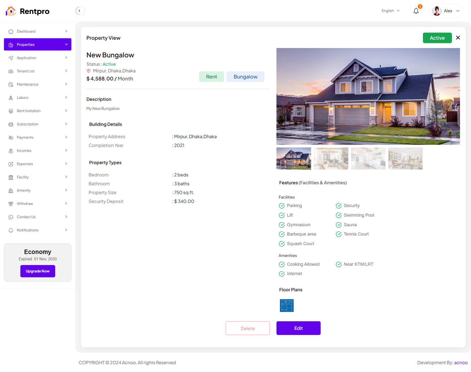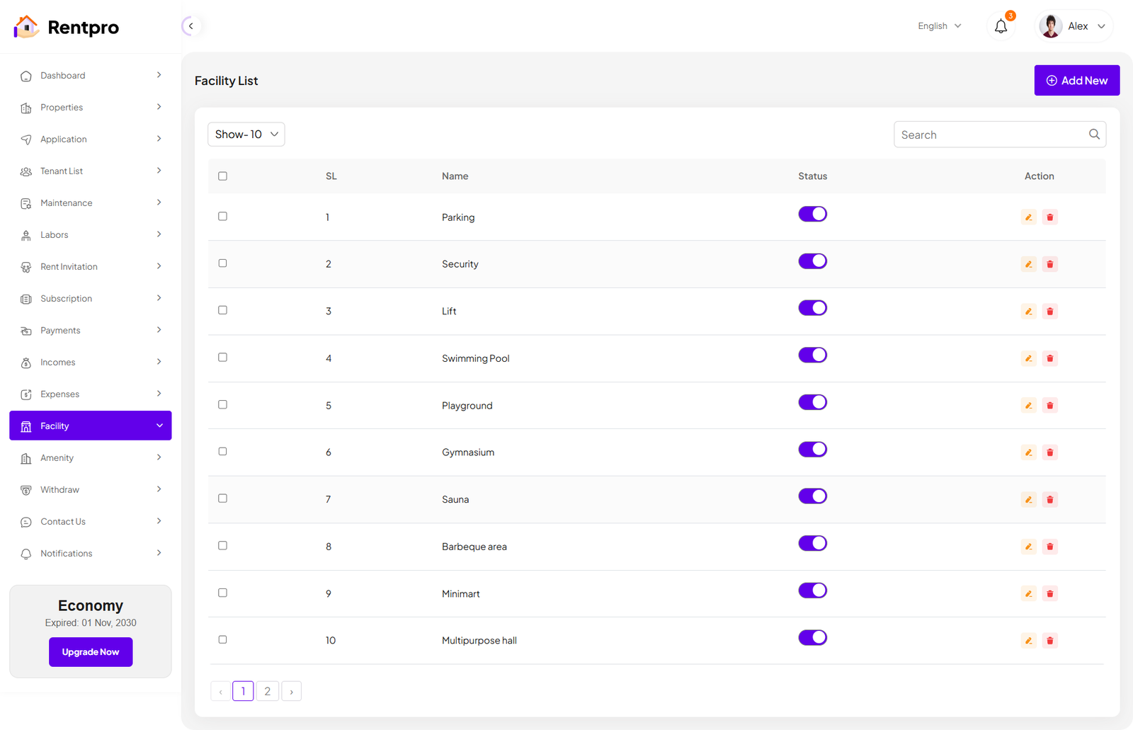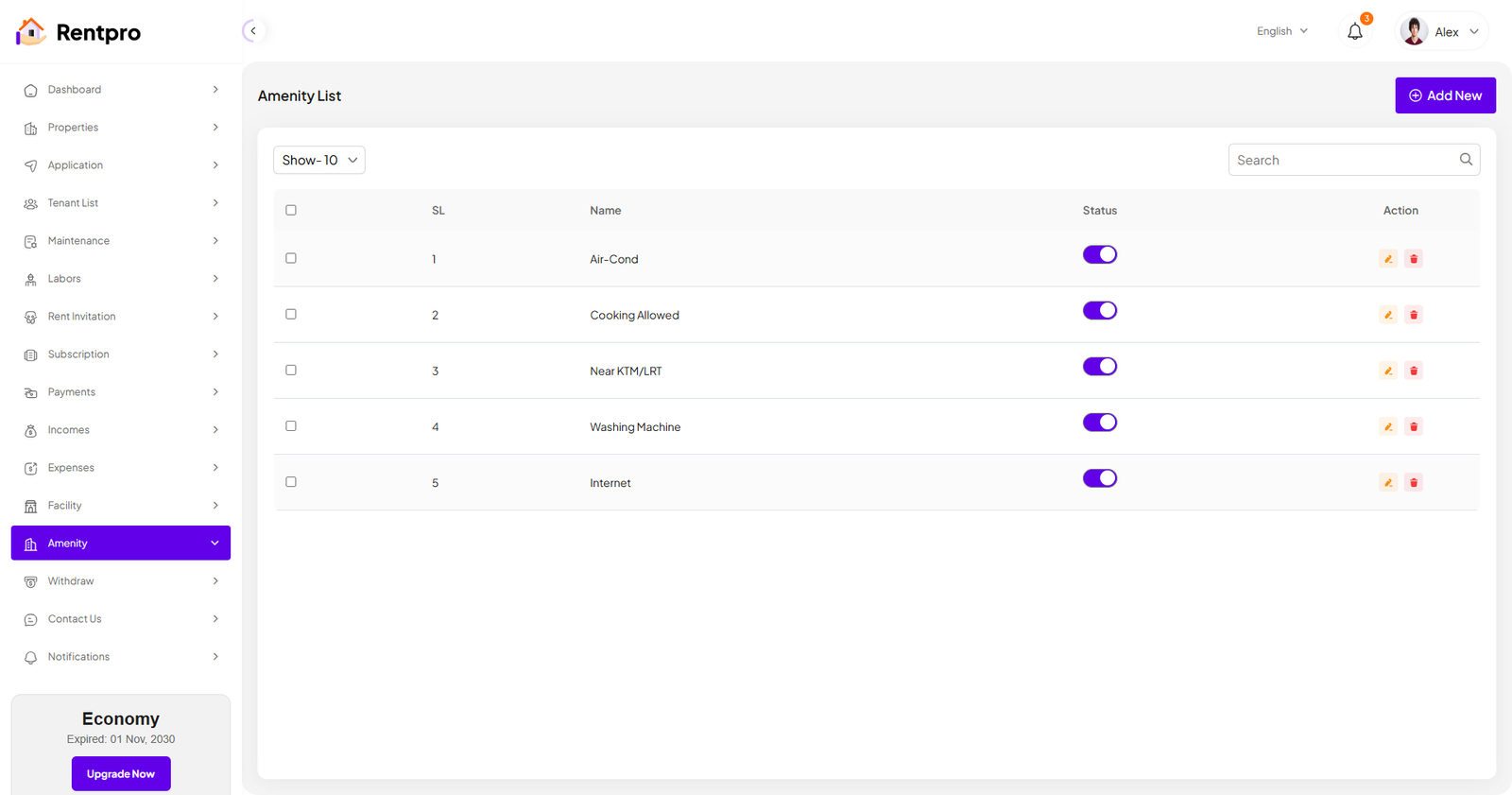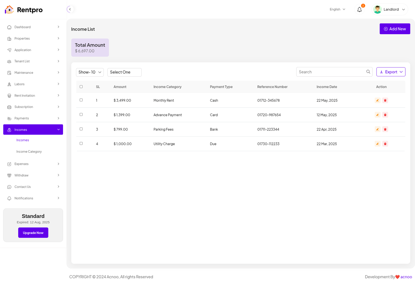 The "Expired Landlord List" page is dedicated to landlords whose subscription plans have ended. These landlords are no longer actively using the platform and may have limited functionality.