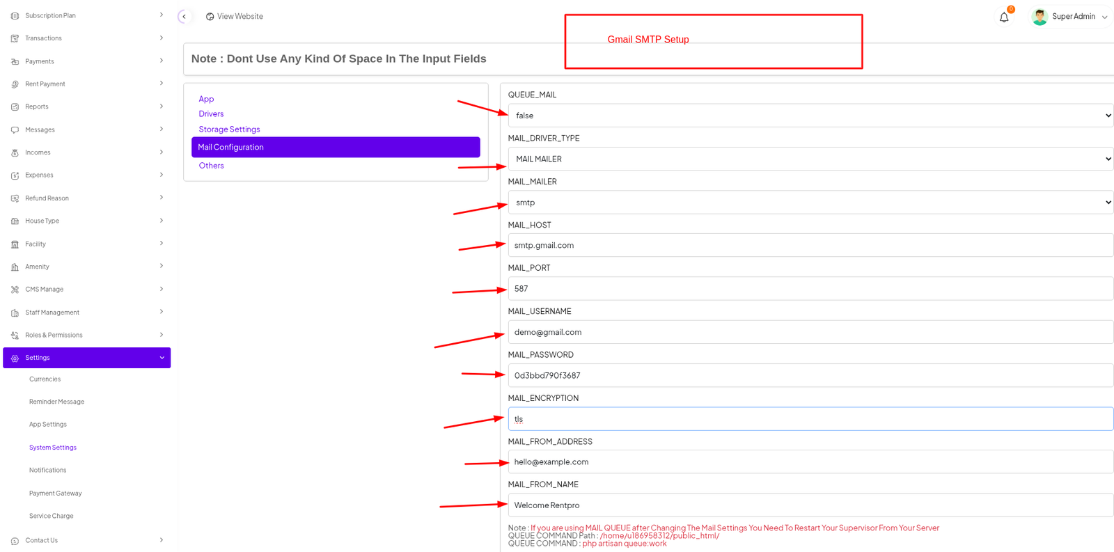| MAIL_DRIVER | smtp |