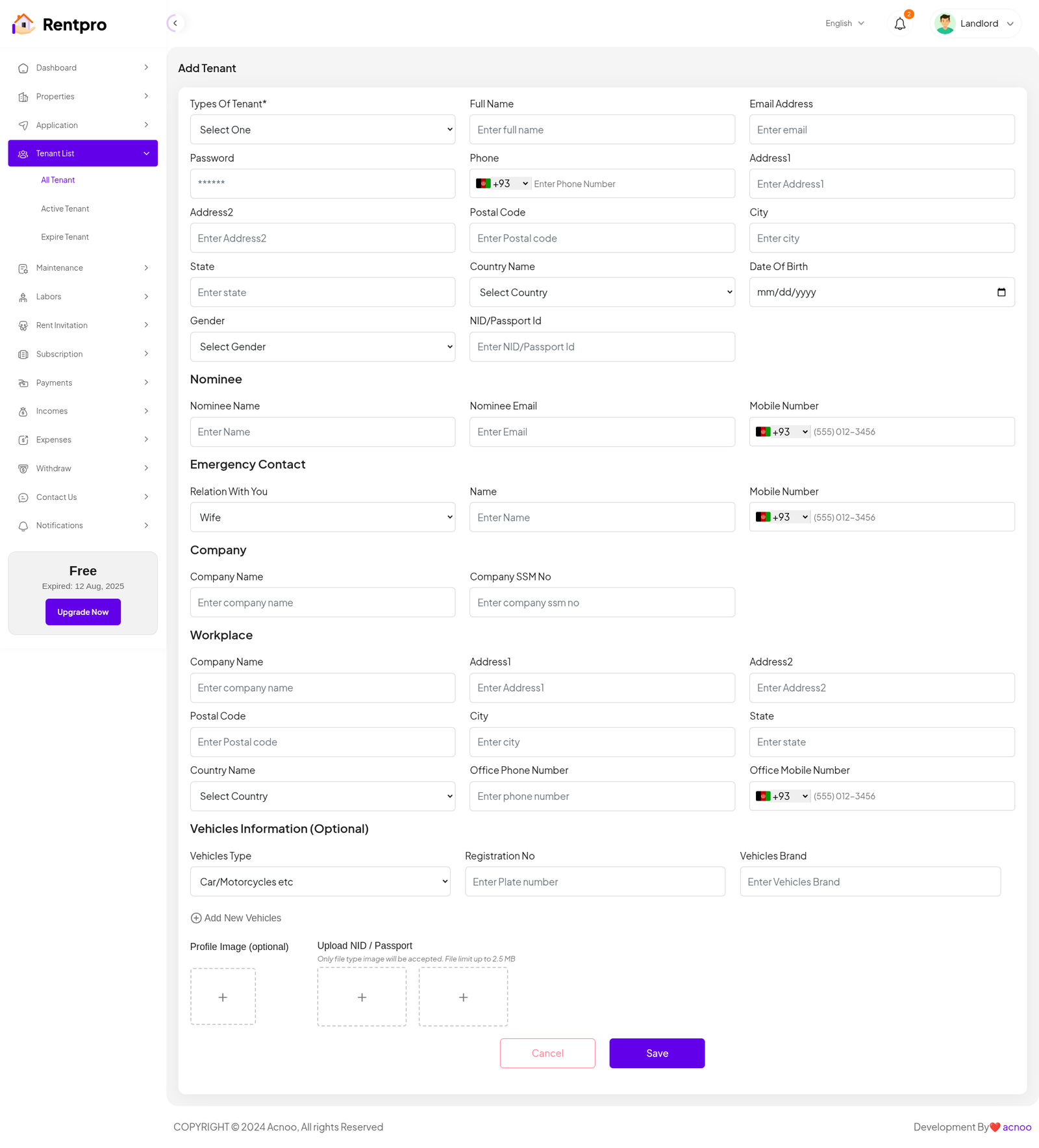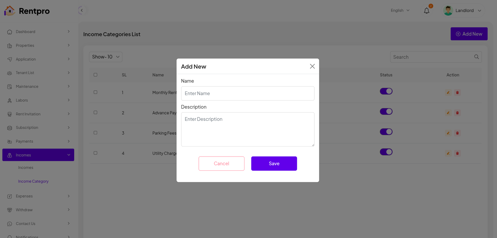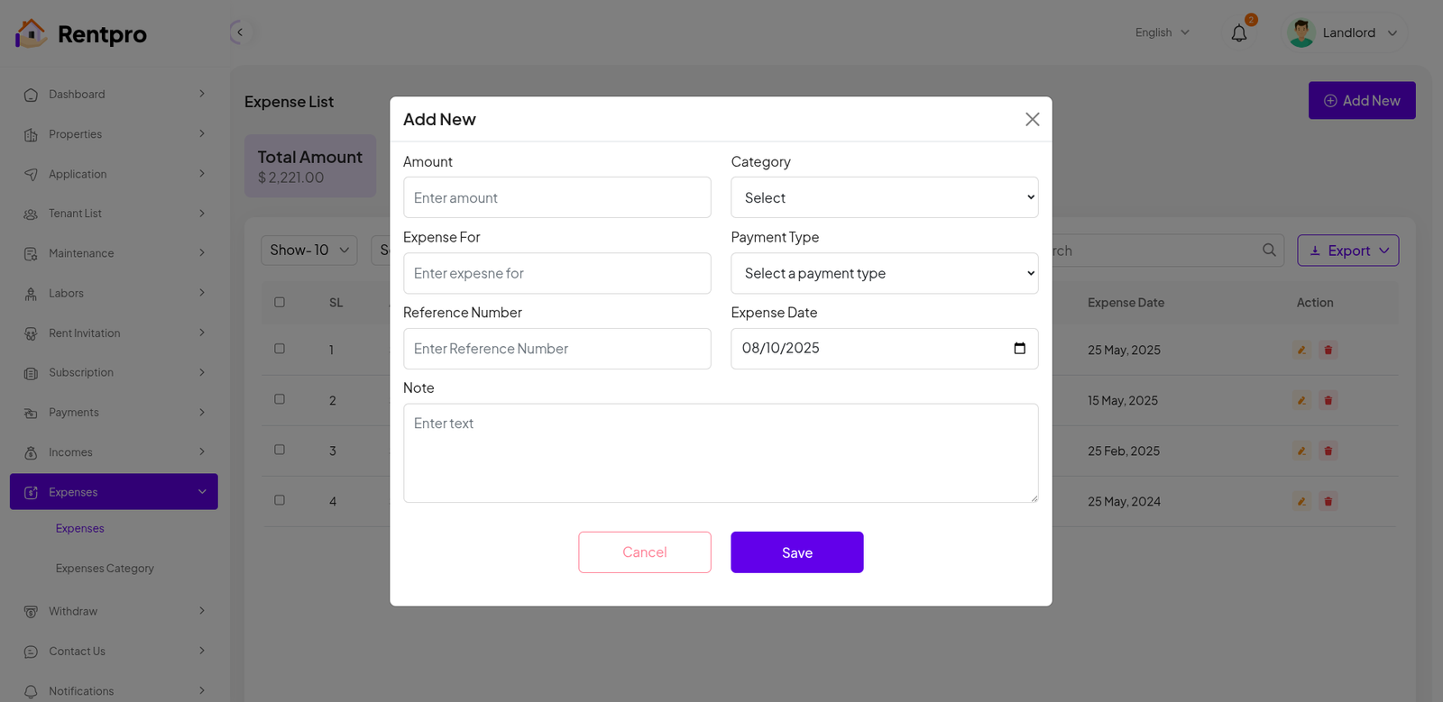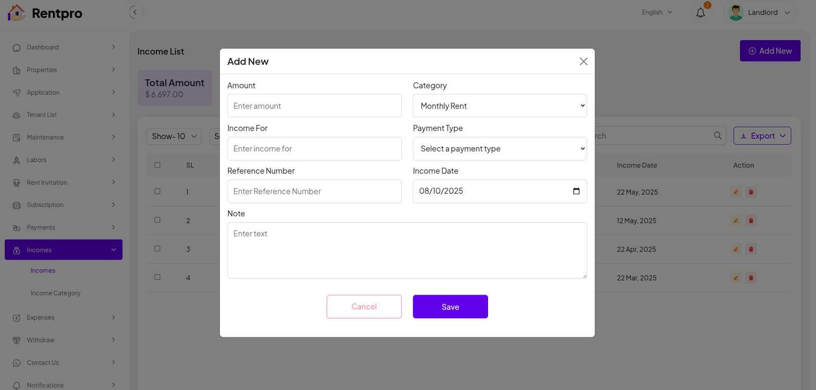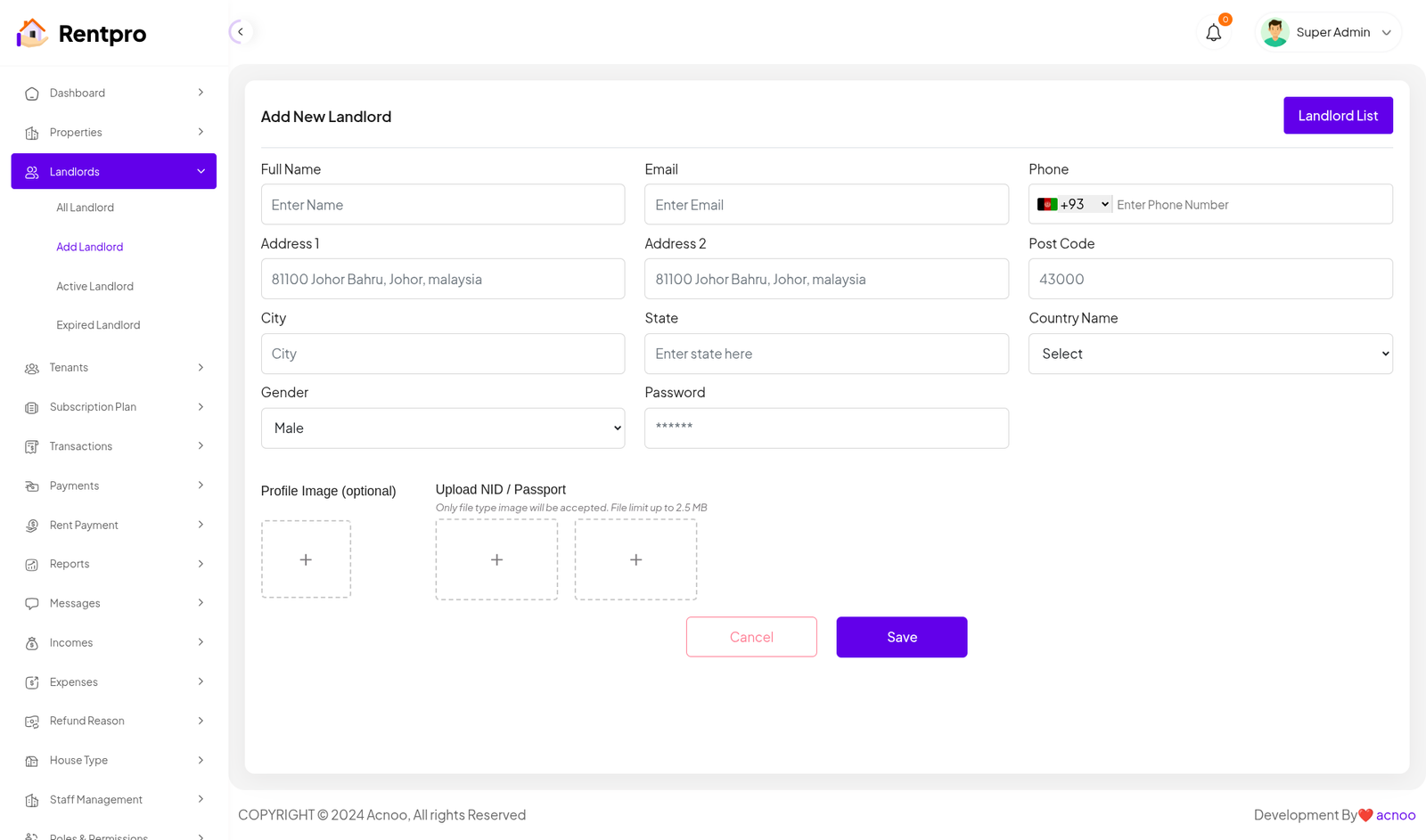 Add New Landlord